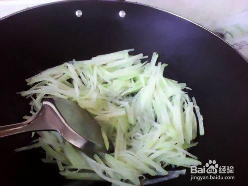 5. 焯水:将切好的瓠瓜丝放入开水中焯水,去除多余的水分和杂质。